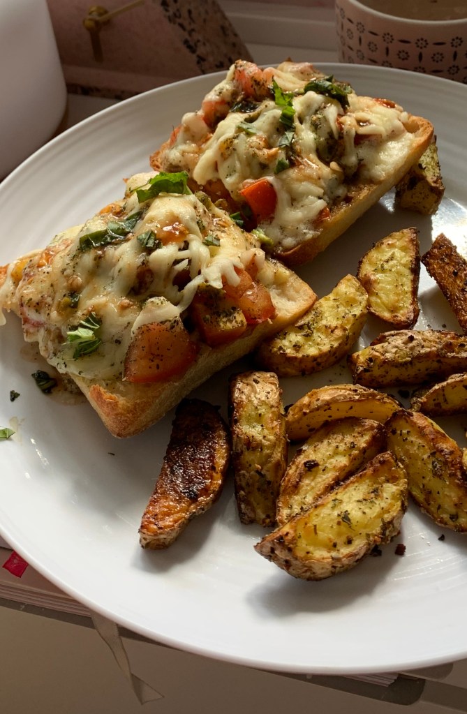 Creamy Stracciatella cheese and Tomato sandwhich with roasted potato wedges